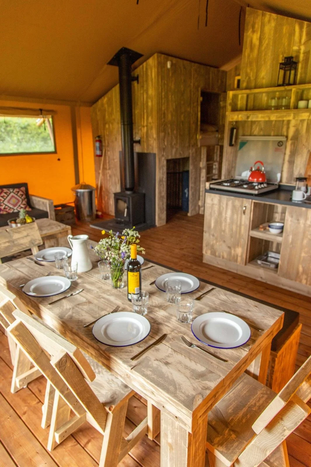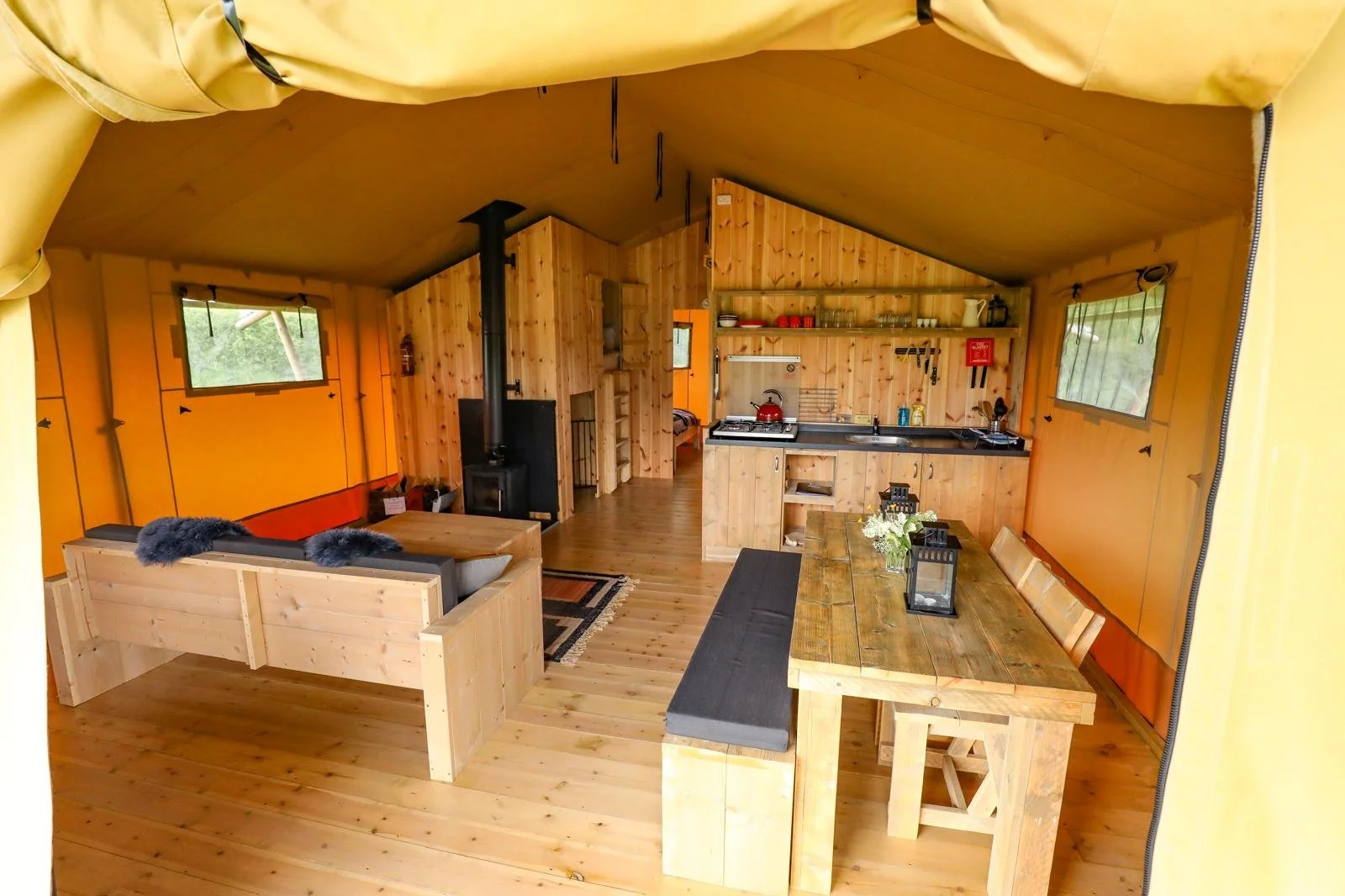 Gambledown Farm features a variety of beautiful and comfortable accommodations in a modern rustic setting, with fully heated cabins, glamping tents, and home cooked meals three times a day.
